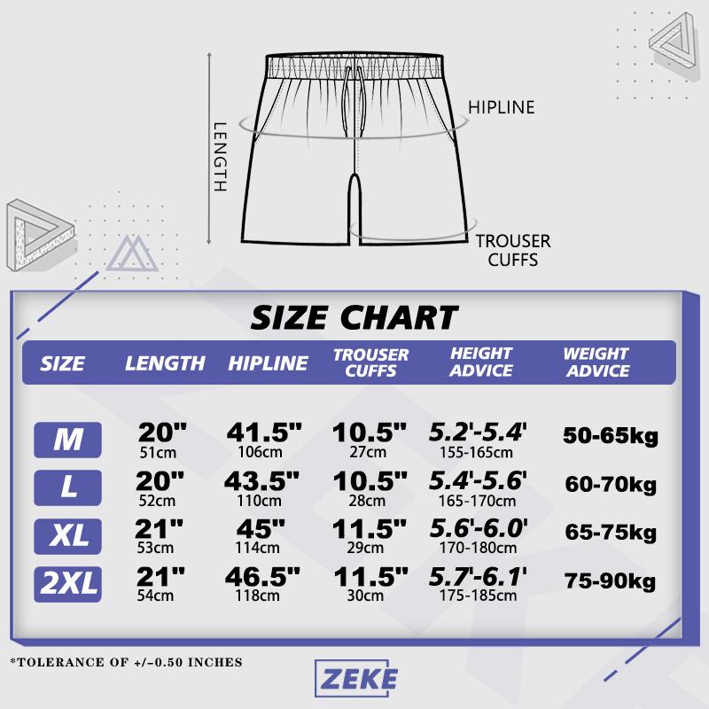 – 2XL: Length 21” / Hipline 46.5” / Trouser Cuffs 12” (Recommended 75–90kg, 175–185cm)