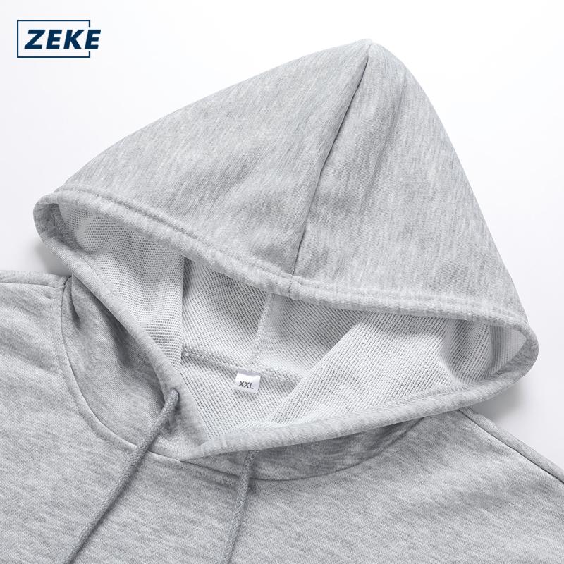 ZEKE C0071 Pullover Pendek Lengan Hoodies Sweatshirts Pria Logo Bordir Atasan Pakaian Kasual Hooded Coats UNISEX