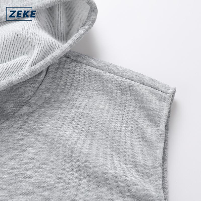 ZEKE C0072 Hoodie Tanpa Lengan Lelaki dengan Logo Bordir Top Menswear Kasual Jaket Berhood UNISEX Sweater